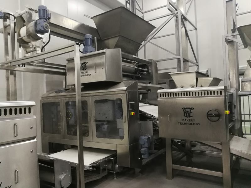 配合喂料機將軋薄的面皮切片并依次疊加至8~16層,并輸送至成型軋輥,該機能將回面始終處于面皮底部,經切片式疊層機生產出來的餅干層次感強、口感松脆、酥化程度極高,配合機器上的撒酥機,可生產蘇打餅干和其它高檔餅干。